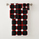 Red Grid and White Dot Pattern on Black Bath Towel Set