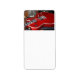 a photograph of a red semi hollow electric six string guitar with white binding lying on top of a black eight at a gig. Add your own custom text for a custom musical design, or used this great guitar photograph as is!
