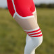 All over printed red retro shorts with a white trim and white over the knee tube socks with red stripes. Change the skin tone if you know the hex colour of your legs!