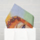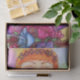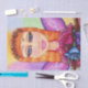 This image is from my original colour pencil drawing. This red haired fairy with purple wings is holding her bouquet of colourful spring flowers. The background is a mixture of blue, yellow and purple. See my store for other products with this design.