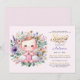 Red Hair Girl's BAPTISM Purple Gold Floral Cross Invitation