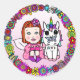 Red Haired Fairy and Rainbow Unicorn and Butterfly Classic Round Sticker
