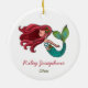 Red Haired Mermaid Personalised Redhead Ginger Ceramic Ornament. Personalise with your custom information on both front and back.