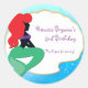 Red Haired Mermaid Sea Birthday Party Sticker. Customise with any text. Matching items available.