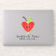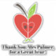 Half red half apple teacher's appreciation Thank You Sticker. A whimsical apple design that features the half of a red apple with a green leaf and the text "Thank You Mrs, Palmer, for a great year" in black. Show your favourite teacher your appreciation with this whimsical kiss cut sticker.