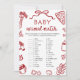 Red Hand Drawn Baby Animal Match Baby Shower Game Invitation