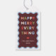 This whimsical Christmas gift tag features a decorative, wavy frame on one side, and a coordinating pattern on the back. The greeting "Happy Merry Everything" is a fun, non-traditional greeting that can apply to any and all holidays that take place during the holiday season. The words are made up of a variety of colours to add a touch of playfulness to the design. Just beneath the greeting is a sweet, tiny heart, and space for the customer's name.