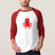 A red smiling squid or octopus drawn in 8-bit pixel art. He's cute and happy on this raglan baseball tee with red sleeves!
