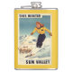 Red-headed Woman Smiling and Skiing Poster Hip Flask