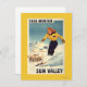 Red-headed Woman Smiling and Skiing Poster Postcard