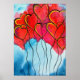 Red heart balloons Valentine watercolor Poster
