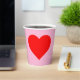 Simple warm red heart on pastel pink coloured background. Graphic designed decoration idea. Aesthetic form commonly used to represent love, support, close bonds, friendship and admiration.