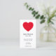 A simple red heart on a vertical business card. You can change the font colour and size. You can also replace the heart shape with a business logo.
