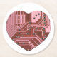 Red Heart Circuit Board Valentines Round Paper Coaster
