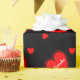 Cute Valentine's day love heart with custom name pattern.Elegant personalised wrapping paper with red hearts on black background