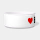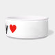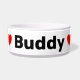 This ceramic dog bowl has two red hearts and can be personalised with your dog's name. Choose any font style and colour that you prefer instead of the black shown here. You can move the hearts around and adjust their size also to make this dog dish just right for your dog. Makes a unique and fun gift for any dog parent!