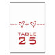 Cute and whimsical Heart Equation Wedding Table Card in dark red featuring a fun math equation "joining" two hearts/people. This nerdy design is a charming choice for a math loving couple or any couple wanting something simple but with a hint of whimsy. Easy to customise, simply add the appropriate table number(s) in the space provided. Click "Customise It" to find more personalisation options.