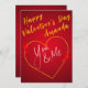 Red Heart Happy Valentine's Day Card. Customise name on front. Customise message and signature on back.