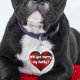 Cute marriage proposal dog tag with a big red heart, on the front, with white text reading Will you marry my daddy? The back is done in solid red with white text reading Free kisses for life if you say yes! All text is ready to personalise to read what you want. What a sweet and unique way for you to pop the question.
