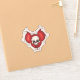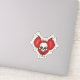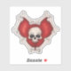 This vinyl sticker is a heart made of white bones filled with red heart muscle with a skull in the centre.