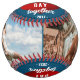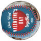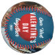 Red Heart Our First Valentine's Together 2 Photo Softball. Rustic personalised softball featuring 2 photos, modern and trendy typography saying Our first Valentine's Day together, lovely red hearts, name and year on a dark blue background. Add your names, 2 photos and year and make a lovely gift for your boyfriend who loves sports.