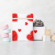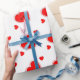 Cute Valentine's day love heart with custom name pattern. Elegant personalised wrapping paper with red hearts on white background.