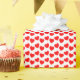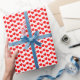 A wrapping paper with red hearts on a white background. You can choose the background colour of your preference.