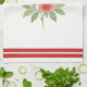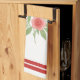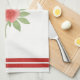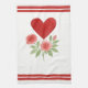 Ideal for cottage-style decor, this kitchen towel showcases a watercolor illustration of a red heart and two pink roses with leaves. The simple yet elegant design is complemented by faux grosgrain ribbon stripes at the top and bottom, adding a touch of textile appeal.
