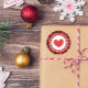 Cute rustic Christmas sticker for your Christmas letters and cards with a red heart. Red buffalo check trim. North Pole Air Mail written in curved text with snowflakes.