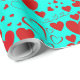 Red Heart Shapes Pattern in Vivid Turquoise Wrapping Paper