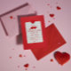 3-d red heart with red and white background, customisable Valentine's Day party invitation.