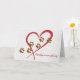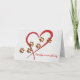 Bold red heart with brown dog paw prints on speckled white background for family birthdy