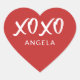 Red Heart XOXO Script Personalised Heart Sticker features XOXO for "Hugs and Kisses" in a script font over a red background. Personalise it with your name in a simple, modern font. The perfect sticker for a loved one, anniversary and Valentine's Day.