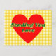 Send love with a charming postcard featuring a red heart on a yellow gingham pattern. Perfect for heartfelt messages and thoughtful greetings.
