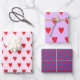 Red Hearts Abstract Hand Drawn Boho Style Pattern Wrapping Paper Sheet