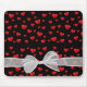 red hearts and bow on black mouse pad