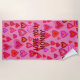 Red hearts beach towel, I love you mummy pink background, hearty and happy design for the world best mum