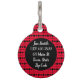 Hearts in a red and black argyle pattern around a chalkboard design with your pet's information. Your contact information is on the back side. Follow the personalise prompt to add your information to both sides.