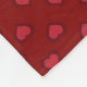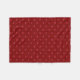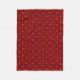 This fleece blanket features a repeating pattern of two-tone red hearts on a crimson background.