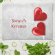 Add a unique touch to your kitchen with a Red Hearts Personalised Kitchen Towel. Kitchen towel design features a a pair of hearts, a soft white leafy vine against a light grey grunge background with an area to personalise with your name. Additional gift items available with this design as well as a variety of colours.