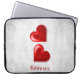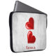Protect your laptop with a Red Hearts Personalised Laptop Sleeve. Laptop sleeve design features a pair of hearts resting on a white leafy vine against a grey grunge background with a place to personalise with your name. Additional items available with this design as well. Please contact me directly for assistance with personalisation.