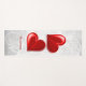 Create your own unique yoga mat with a Red Hearts Personalised Yoga Mat. Mat design features a a pair of hearts, a soft white leafy vine against a light grey grunge background with an area to personalise with your name. Additional gift items available with this design as well as a variety of colours.