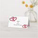 Intertwined red hearts with roses on these pretty wedding table place cards for your wedding reception. The front has two blank lines for you to write the guests name and their table number and the back has space for your names and wedding date.