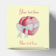 These two romantic red hearts have a pretty white bow tying them together representing two hearts in love as one. This great little box will make delightful and original wedding favours container for your wedding guests. These two hearts wrapped in a white bow are also on my wedding/civil ceremony invitations with matching envelopes and there's red heart and bow napkins to match as well. You can personalise your box by add your own details on the lid of this delightful little wedding favours box, e.g. name and date of the couple tying the knot or the name of the person you love when you give this heart box as a valentines gift you’ll also see this unique heart picture on my lockets and greeting cards. I think this original red heart illustration looks great against the soft cream background, it will make a thoughtful and romantic gift for someone special in your life or it can be a very special and memorable little reminder of your wedding day for your family and wedding guests. This is a customisable box, you can personalise it with your own text. The original picture of this little heart and bow illustration is painted in watercolor.
