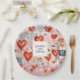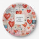 Red Hearts Whimsical Love Pattern Birthday Paper Plate