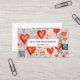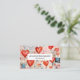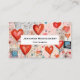 Business cards with a fun mixed media style pattern. Big red hearts and various random shapes scattered around making a delightfully cute pattern.