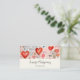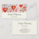 Business cards with a fun mixed media style pattern. Big red hearts and various random shapes scattered around making a delightfully cute pattern.