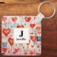 Red Hearts Whimsical Love Pattern Monogram Key Ring
