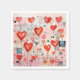Paper napkins with a fun mixed media style pattern. Big red hearts and various random shapes scattered around making a delightfully cute pattern.