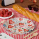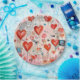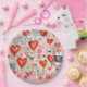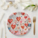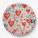 Paper plates with a fun mixed media style pattern. Big red hearts and various random shapes scattered around making a delightfully cute pattern.